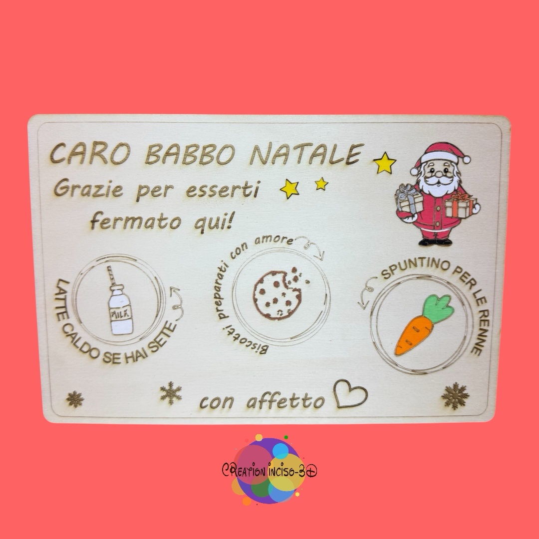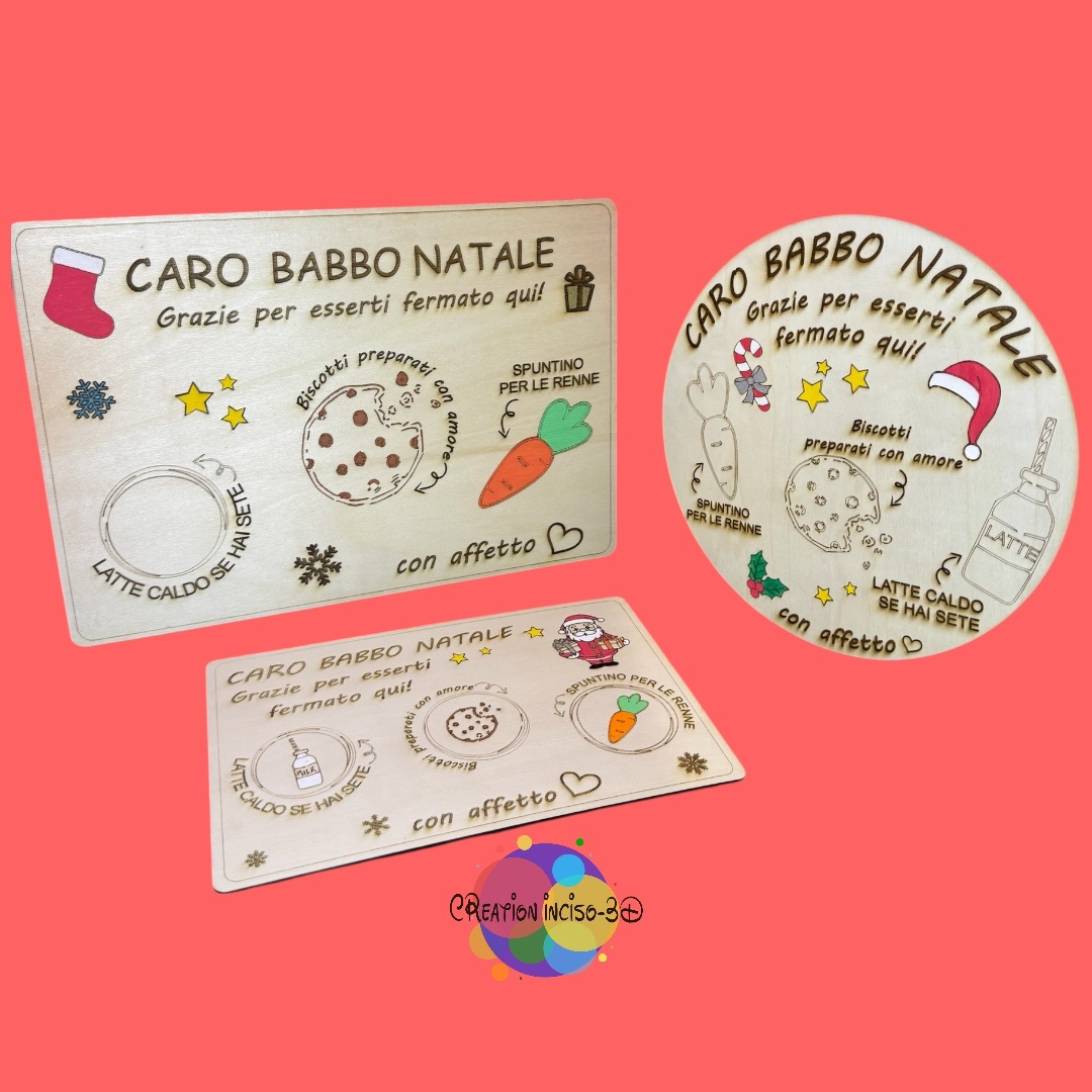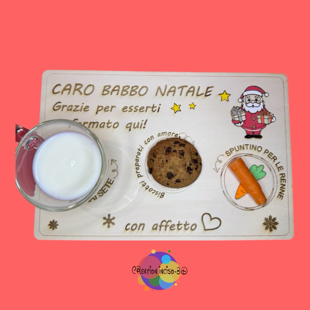 • Design Emozionale: Ogni vassoio è inciso con la tenera frase: “CARO BABBO NATALE, Grazie per esserti fermato qui! con affetto”, catturando lo spirito della generosità e della gratitudine.